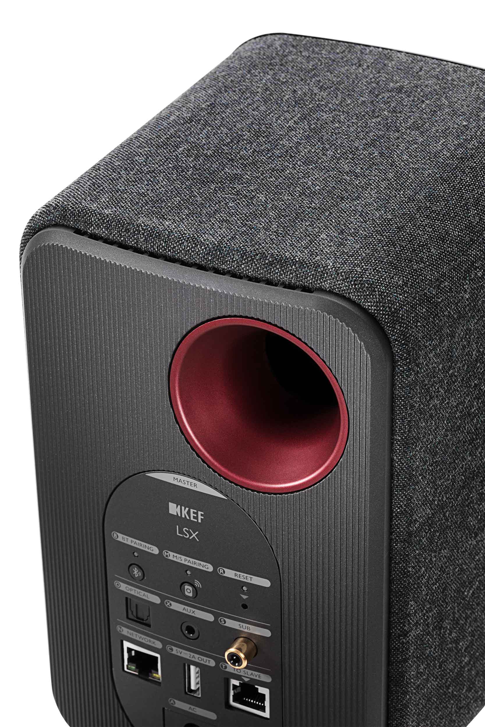 LSX’s gently curved cabinet was designed with extensive use of Finite Element Analysis and is extensively braced, as well as featuring constrained layer damping as found in KEF’s high-end products. Continuing KEF’s long tradition of design collaboration, LSX was overseen by designer Michael Young who has created a masterpiece of understated elegance. LSX comes in a choice of five colours – Black, Blue, Maroon and Olive – which are clad in a luxury fabric by Danish textile manufacturer Kvadrat – and a striking Gloss White.