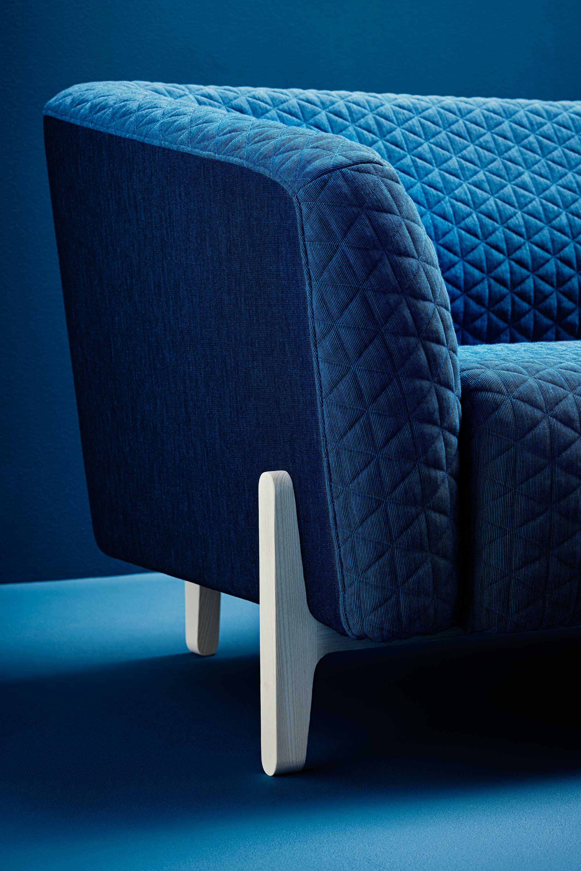 Every angle and element in this sofa and easy chair has been carefully thought out. Quilted textile covers the soft seating, which rests on a delicately shaped wooden frame. The size, appearance and function make Young suitable for public spaces and hospitality areas, as well as offices and domestic spheres where space is limited.